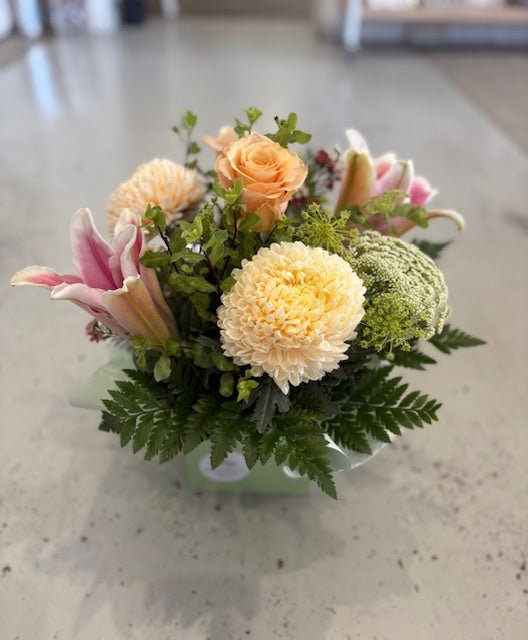 A heartfelt way to commemorate a loved one. Crafted with care, this box of beautiful flowers provides a warm reminder of those you cherish. Give an expression of love and remembrance with a lasting tribute.