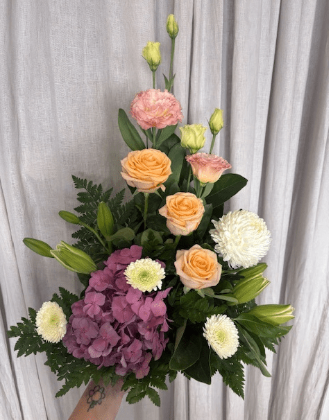 The Floral Sheaf is a heartfelt way to commemorate a loved one. Crafted with care, this sheaf of beautiful flowers provides a warm reminder of those you cherish. Give an expression of love and remembrance with a lasting tribute.