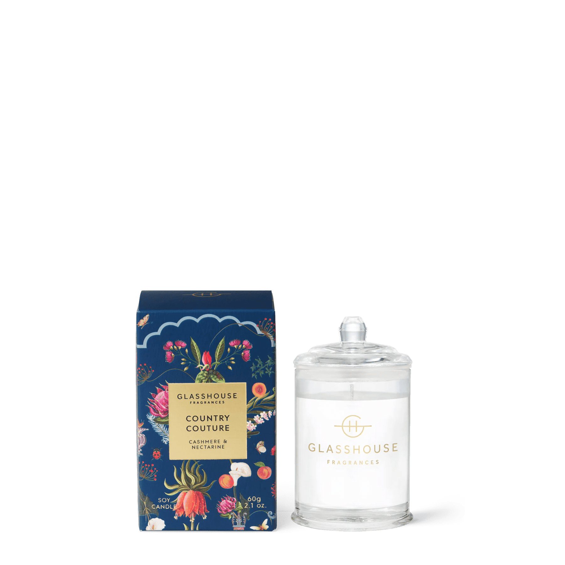 The new GLASSHOUSE FRAGRANCES candle wick trimmer perfectly trims your wicks to the ideal length to ensure a clean burning candle and helps prevent soot from forming on the glass. Made from stainless steel with gold plating. Includes gift box.