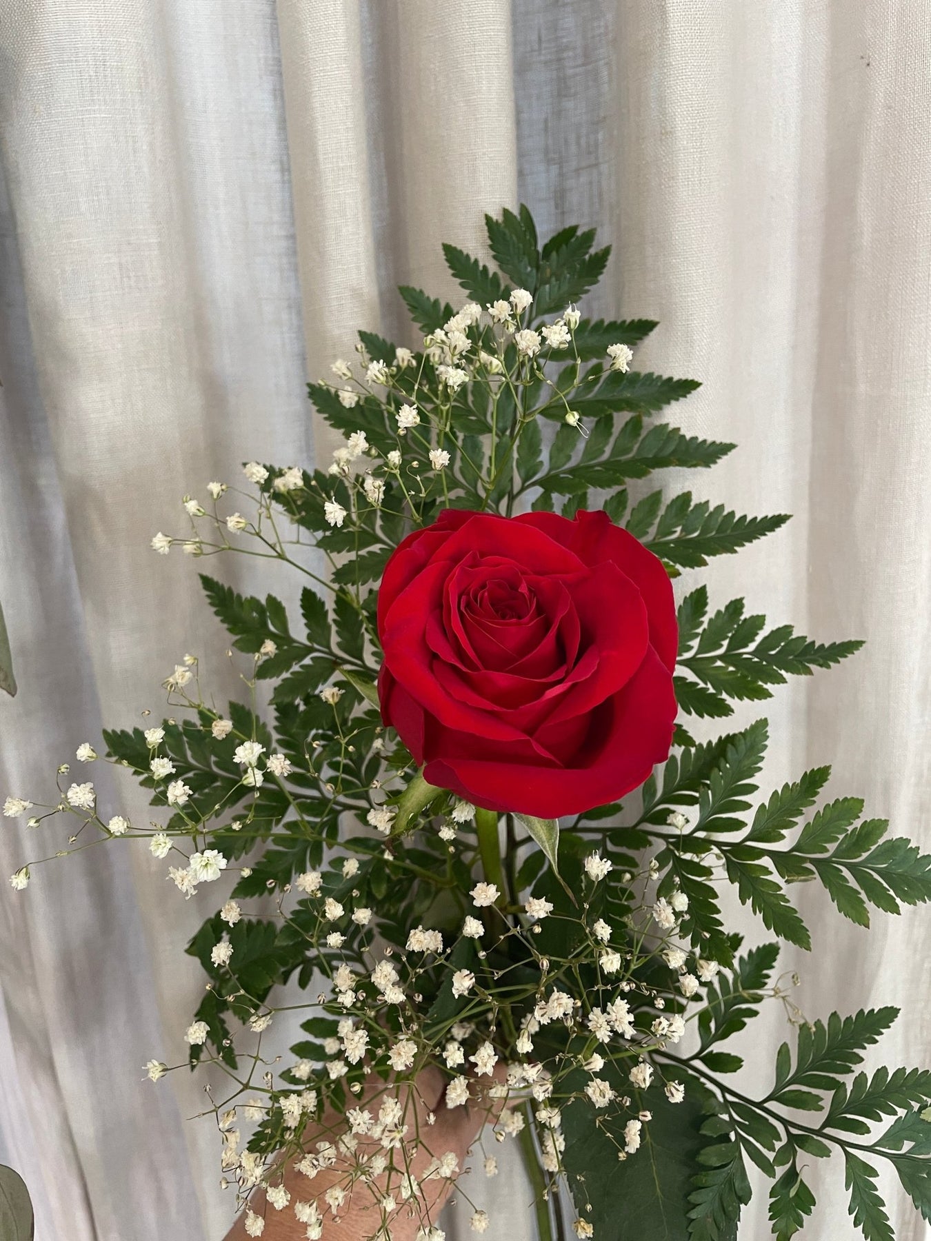 Surprise your loved one with our Be my Valentine - Single Rose this Valentine's Day! Available in classic red or florist's choice, this standard rose is sure to show your affection. Add a touch of romance with our dressed option. A perfect gift for your special someone.